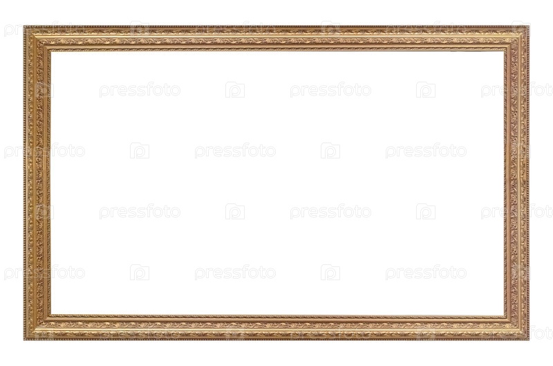 Панорамная золотая рама для картин, зеркал или изолированной фотографии на белом фоне