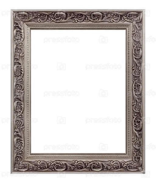 Серебряная рама для картин, зеркал или фотографии изолированной на белом фоне