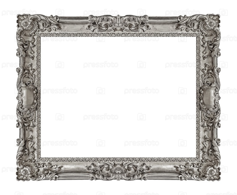 Серебряная рама для картин, зеркал или изолированной фотографии на белом фоне