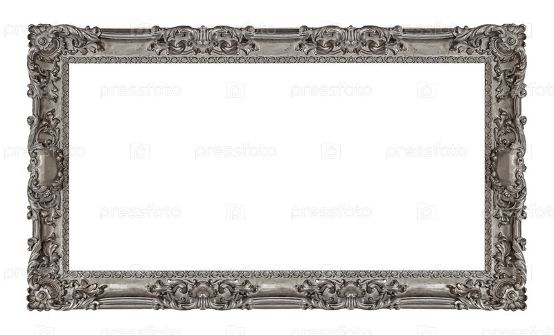 Панорамная серебряная рама для картин, зеркал или изолированной фотографии на белом фоне