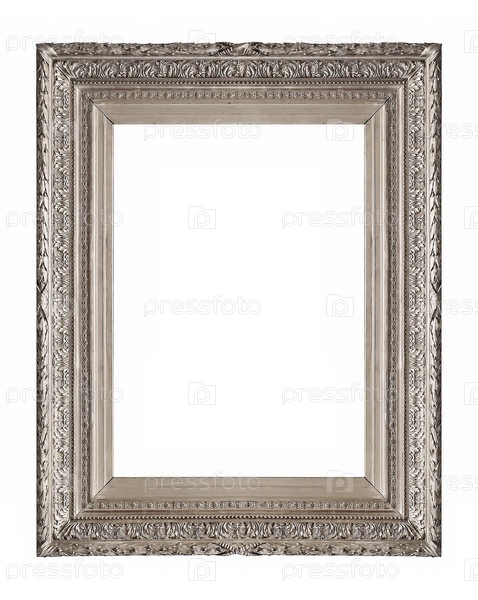 Серебряная рама для картин, зеркал или фотографии изолированной на белом фоне