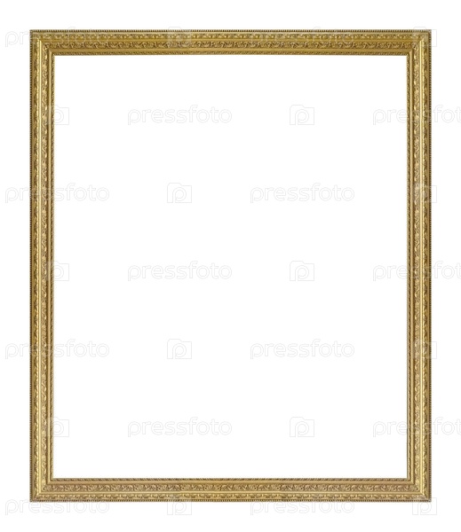 Золотая рама для картин, зеркал или фотографии изолированной на белом фоне
