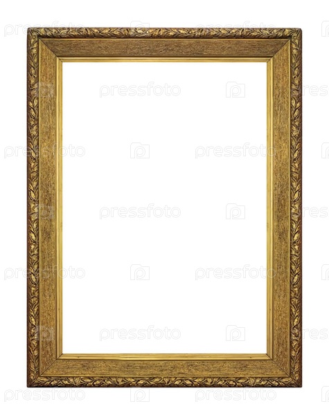 Золотая рама для картин, зеркал или фотографии изолированной на белом фоне