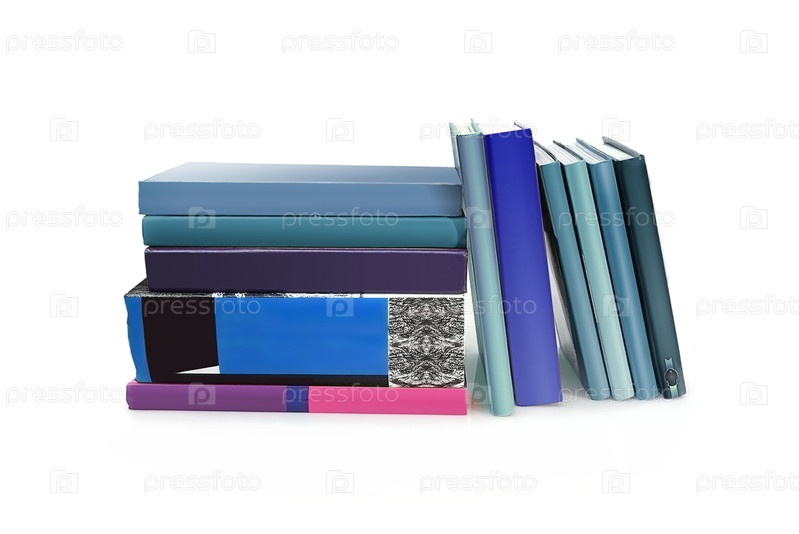 Куча книг в цветных обложках с белыми листами, изолированными на белом фоне