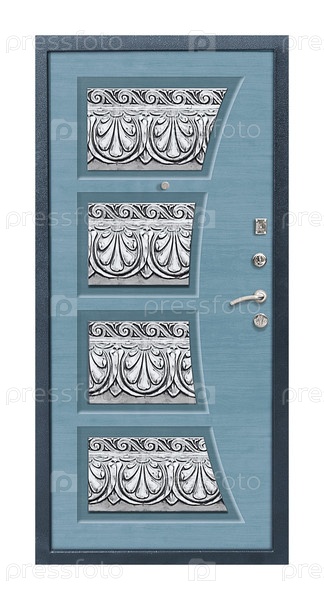 Модель входной металлической двери, изолированной на белом фоне