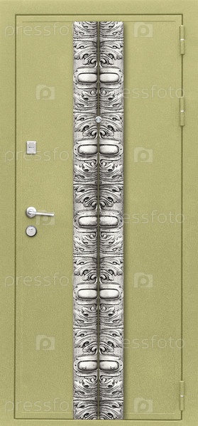 Модель входной металлической двери, изолированной на белом фоне