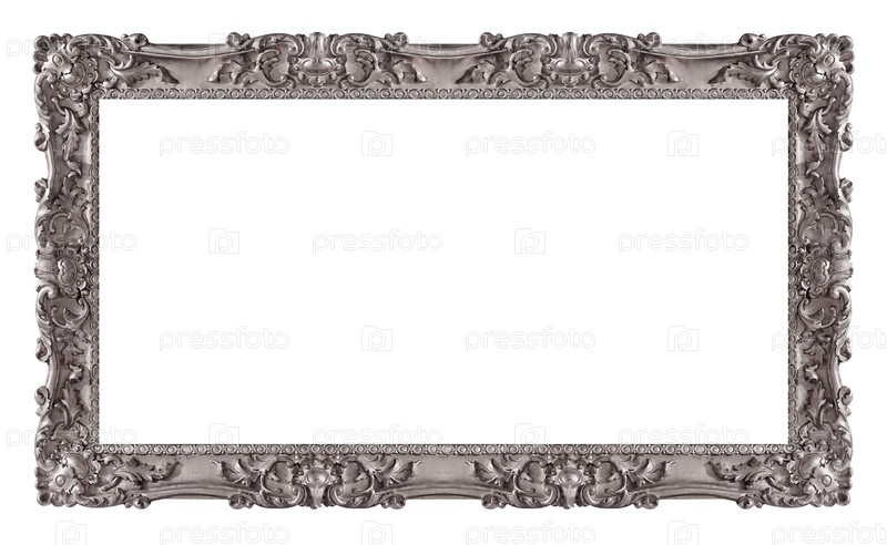 Панорамная серебряная рама для картин, зеркал или изолированной фотографии на белом фоне