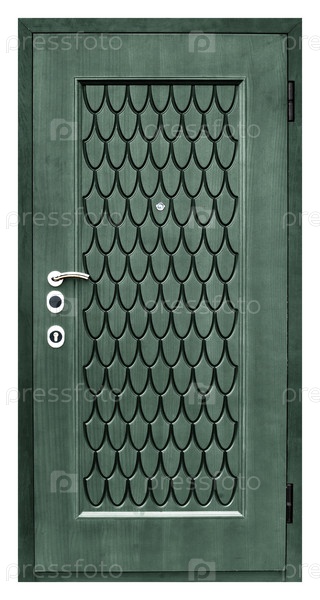 Модель входной металлической двери, изолированной на белом фоне