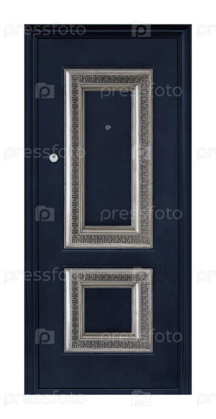 Модель входной металлической двери, изолированной на белом фоне