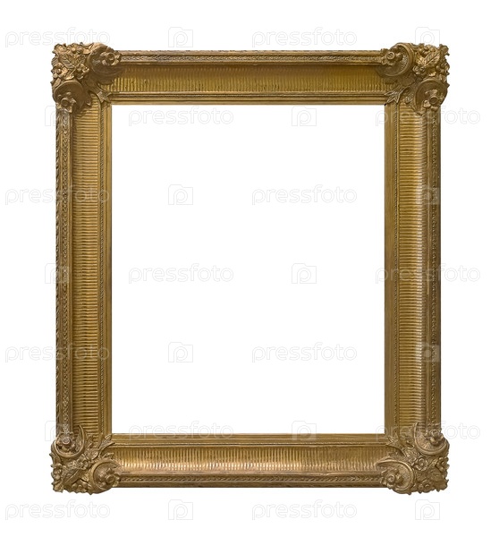 Золотая рама для картин, зеркал или фотографии изолированной на белом фоне