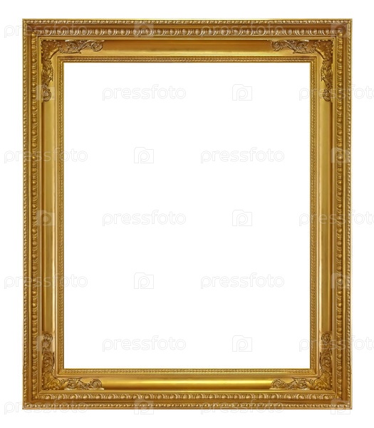 Золотая рама для картин, зеркал или фотографии изолированной на белом фоне, готовый вырез