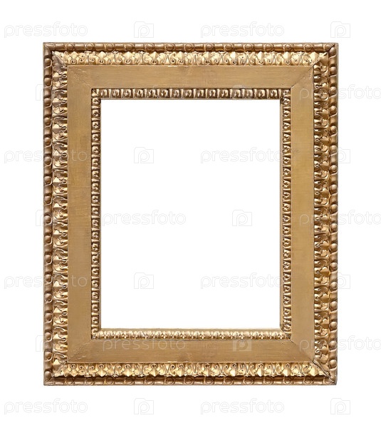 Золотая рама для картин, зеркал или фотографии изолированной на белом фоне