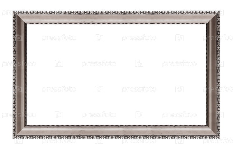 Панорамная серебряная рама для картин, зеркал или изолированной фотографии на белом фоне