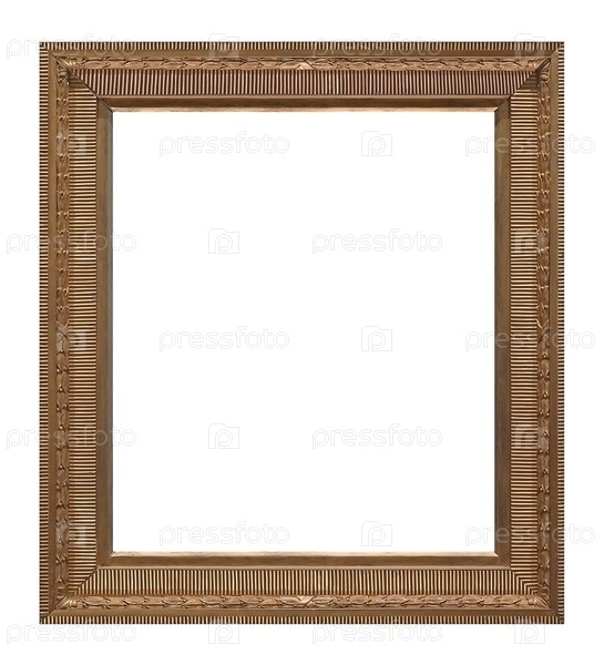 Золотая рама для картин, зеркал или фотографии изолированной на белом фоне, готовый вырез