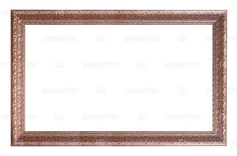 Панорамная золотая рама для картин, зеркал или изолированной фотографии на белом фоне с готовым вырезом