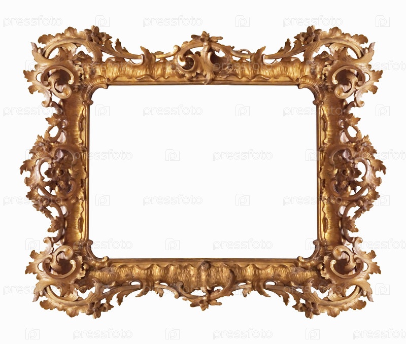Золотая рама для картин, зеркал или фотографии изолированной на белом фоне