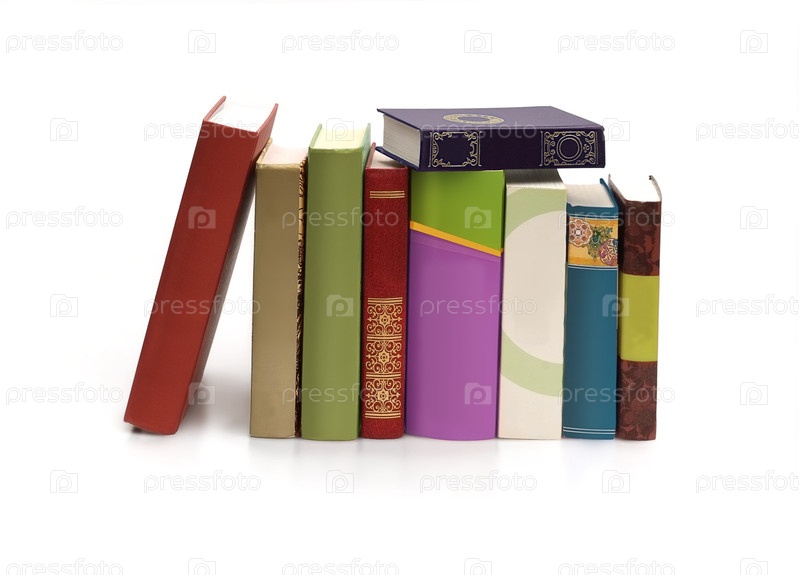 Куча книг в цветных обложках с белыми листами, изолированными на белом фоне