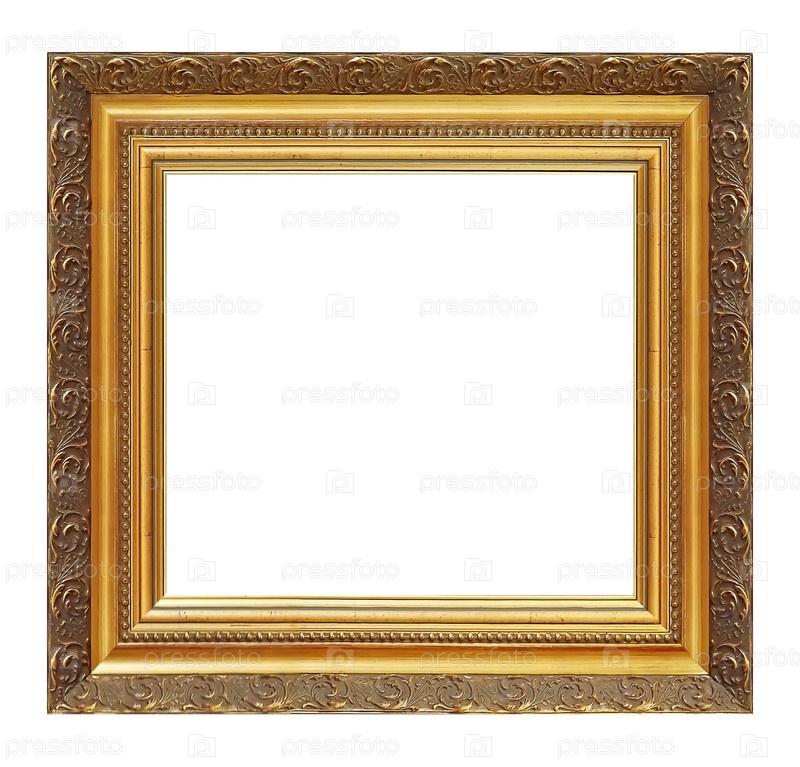Золотая рама для картин, зеркал или фотографии изолированной на белом фоне