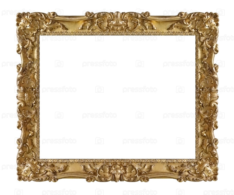 Золотая рама для картин, зеркал или фотографии изолированной на белом фоне