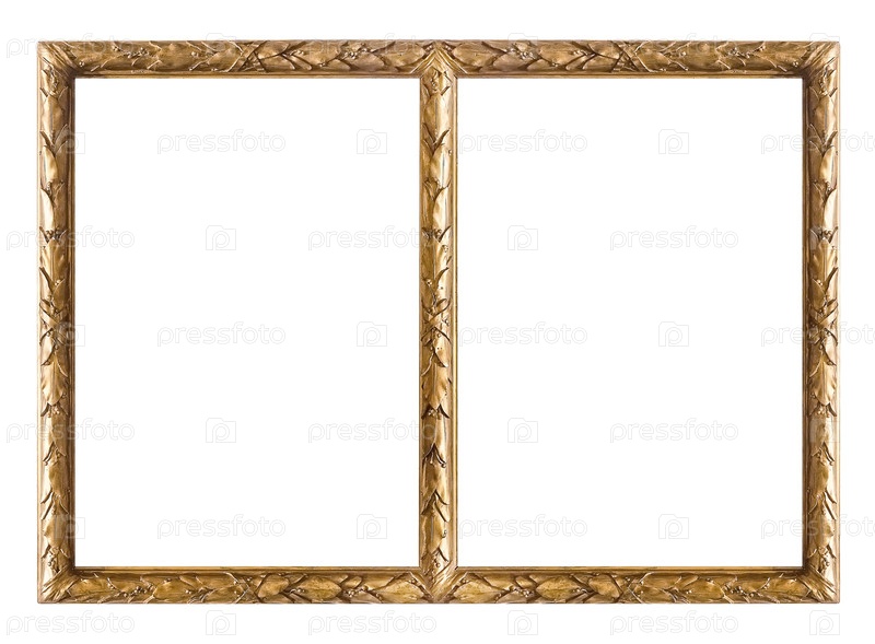 Двойная золотая рама (диптих) для картин, зеркал или фотографий, изолированных на белом фоне