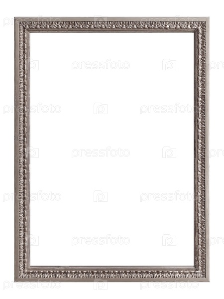 Серебряная рама для картин, зеркал или фотографии изолированной на белом фоне, вырезка готова