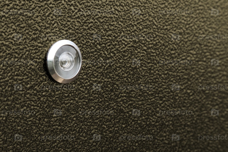 Изолированные входные металлические двери и шпионские отверстия: фон и текстура