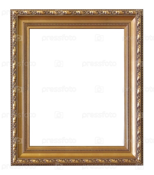 Золотая рама для картин, зеркал или фотографии изолированной на белом фоне