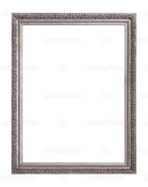 Серебряная рама для картин, зеркал или фотографии изолированной на белом фоне, вырезка готова