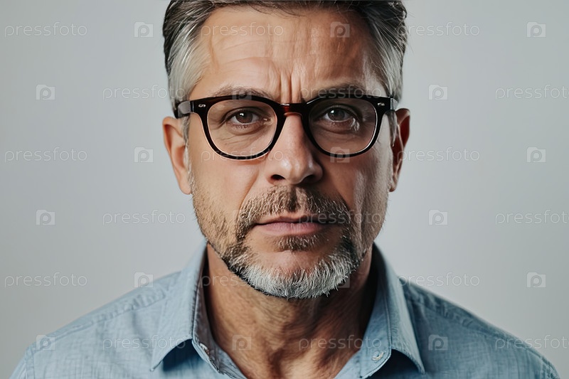 Зрелый мужчина в очках и синей куртке, офисный портрет, оздоровление зрения, цифровое консультирование, управленческий авторитет, профессиональный бизнес-стиль, ясность, копирайтинг