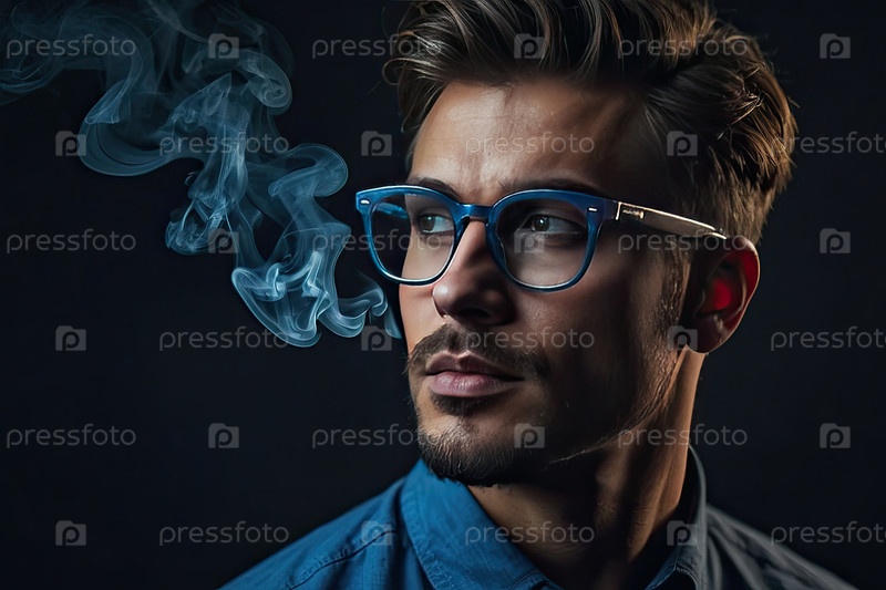 Уверенный профессионал в современных оптических очках, синем дыме, офисном консалтинге, цифровом образе жизни, уходе за зрением, бизнес-лидерстве, здоровой работе, очках