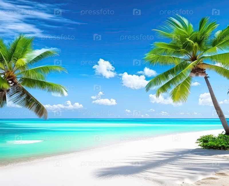 Пальмовый, белый песок и тень, визуальные эффекты агента, комфорт, реклама отпуска, солнечная защита, продажи туров, отельное предложение, семейный уход