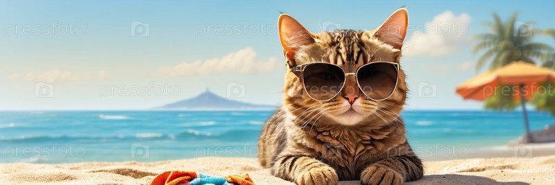 Кошка на пляжном полотенце, информация о путешествиях животных по воздуху, проживание в гостиницах для питомцев, безопасность от солнца / тепла для домашних животных, временный уход, веб-туризм и социальные сети