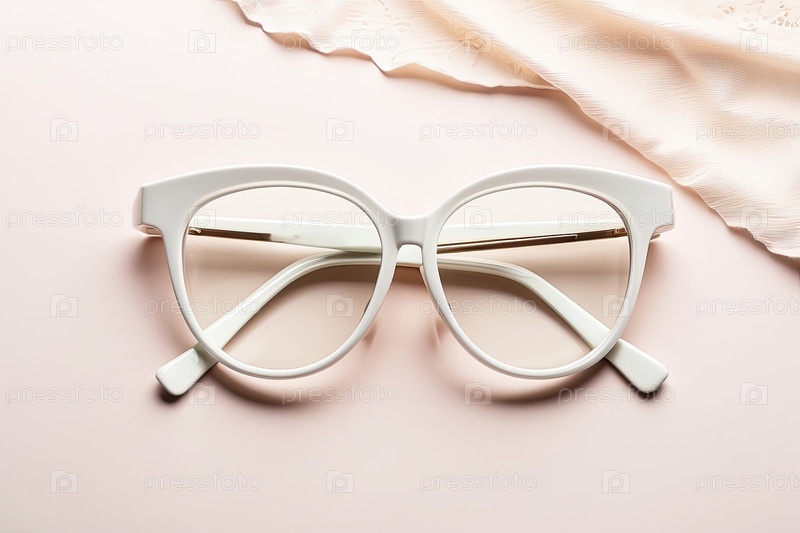 Белые и золотые очки на шелковой светло-розовой ткани, элегантный оптический дисплей, коллекция модных очков, розничный баннер, визуально мягкий весенний материал, текстовая зона