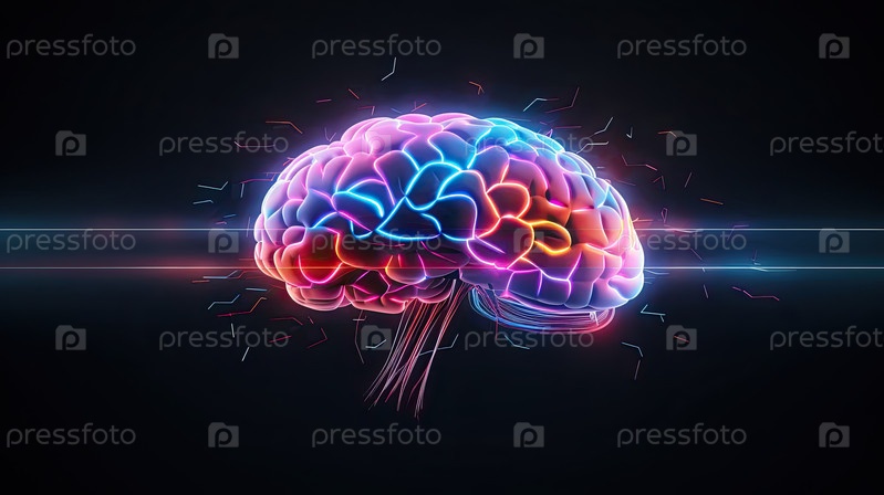 Светлый розовый синий цифровой мозг с сетевой энергией, символ искусственного интеллекта, науки будущего, исследования данных, виртуальный помощник, современная медицина