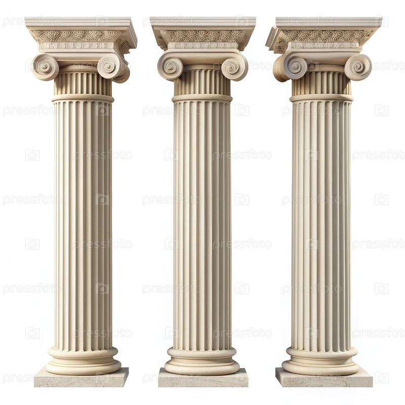 Три изолированных греческих колонны с флейтированными валами и ионическими капиталами