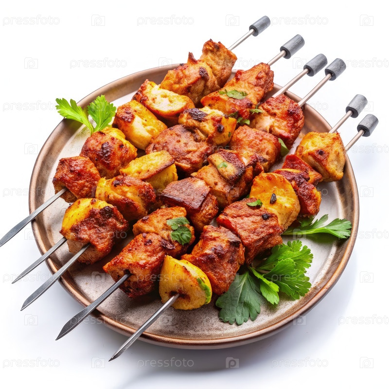Зажаренная курица и ананасовые косточки на тарелке. генеративный ИИ