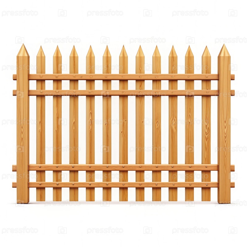 Деревянный забор с острыми верхними рельсами, изолированным на белом фоне