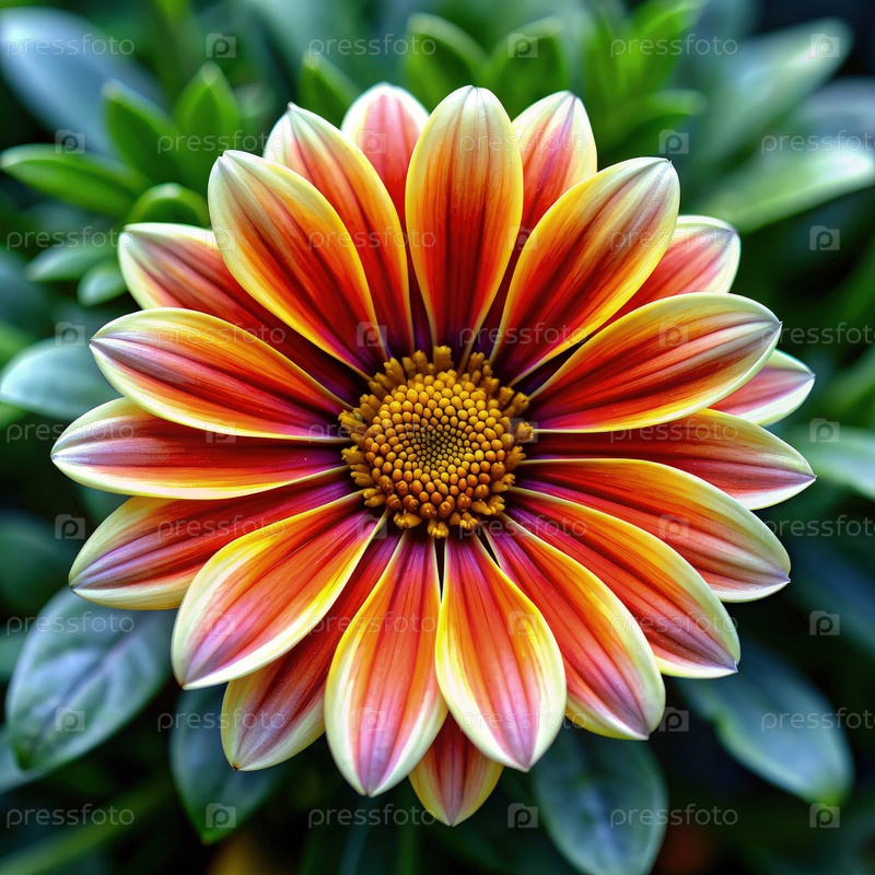 Ближайшее изображение ярко оранжевого и желтого цветка Газании. генеративный ИИ