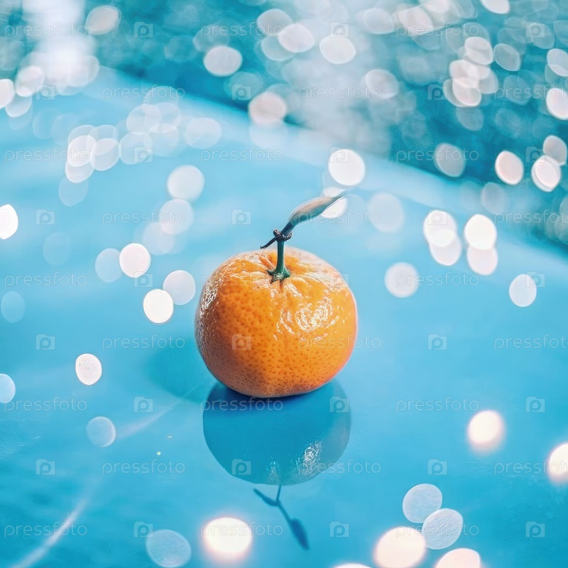 Одинокий мандарин-оранжевый на синей поверхности с огнями боке