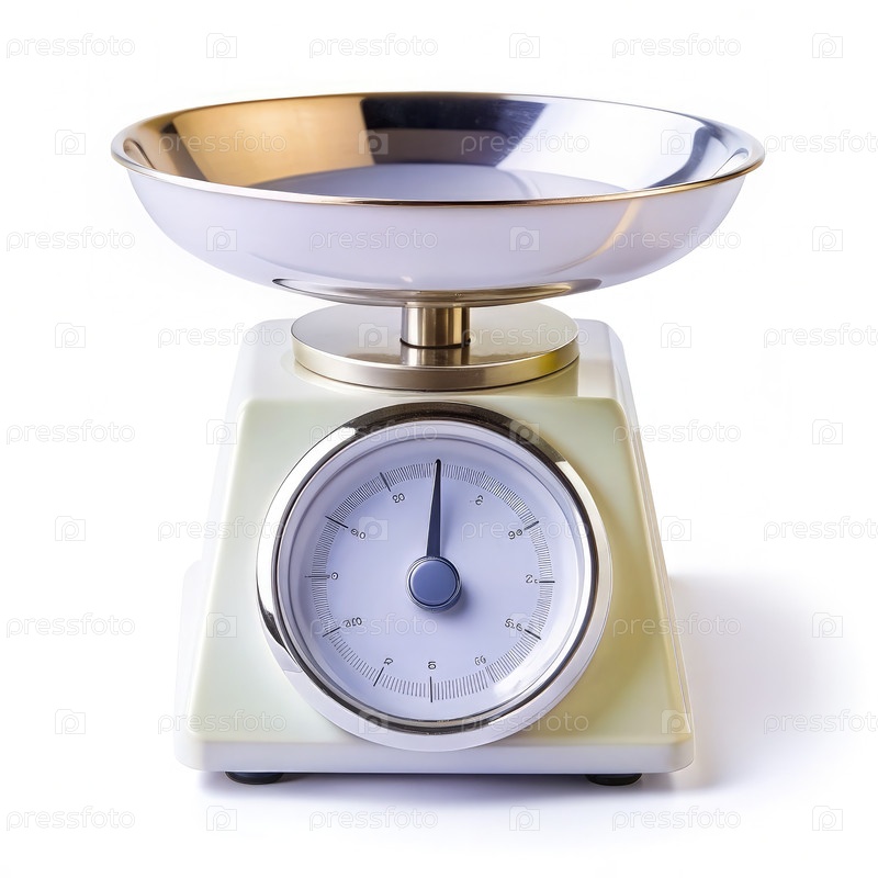 Классическая белая кухонная шкала изолирована на белом фоне. генеративный AI