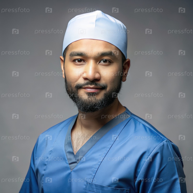 Профильный портрет медицинского работника-мужчина в униформе Scrubs