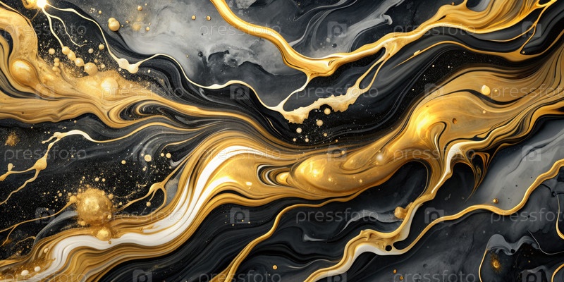 Абстрактное золото и черный вихревое мраморное искусство. генеративная ИИ