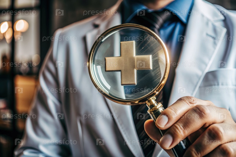 Врач держит лупу с знаком плюс для медицинского обслуживания. генеративный AI