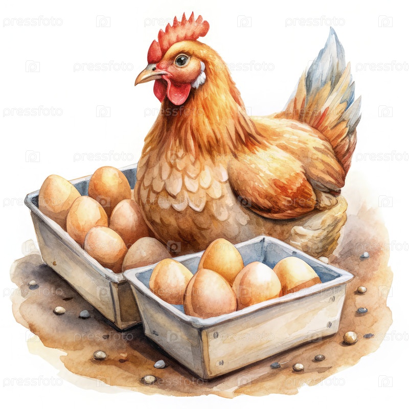 Коричневая курица сидит рядом с коробкой свежих яиц