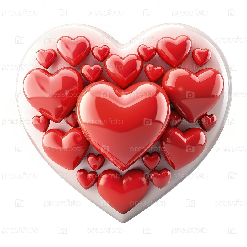 Красное сердце в форме дня святого Валентина дизайн с несколькими сердцами. генеративный AI