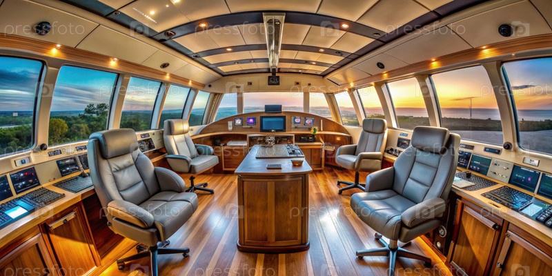 Роскошный вид с моста большой яхты на закате
