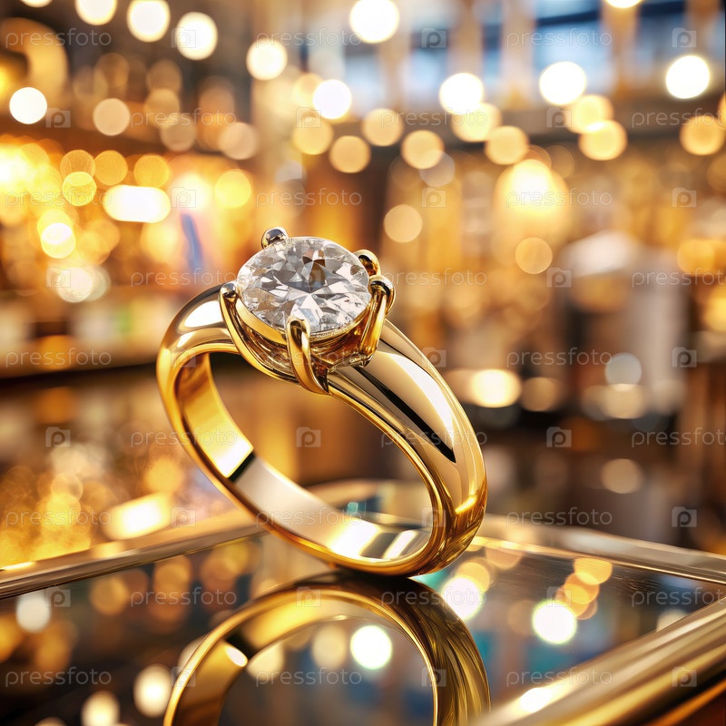 Золотой бриллиантовый кольцо, отображаемое в ювелирном магазине