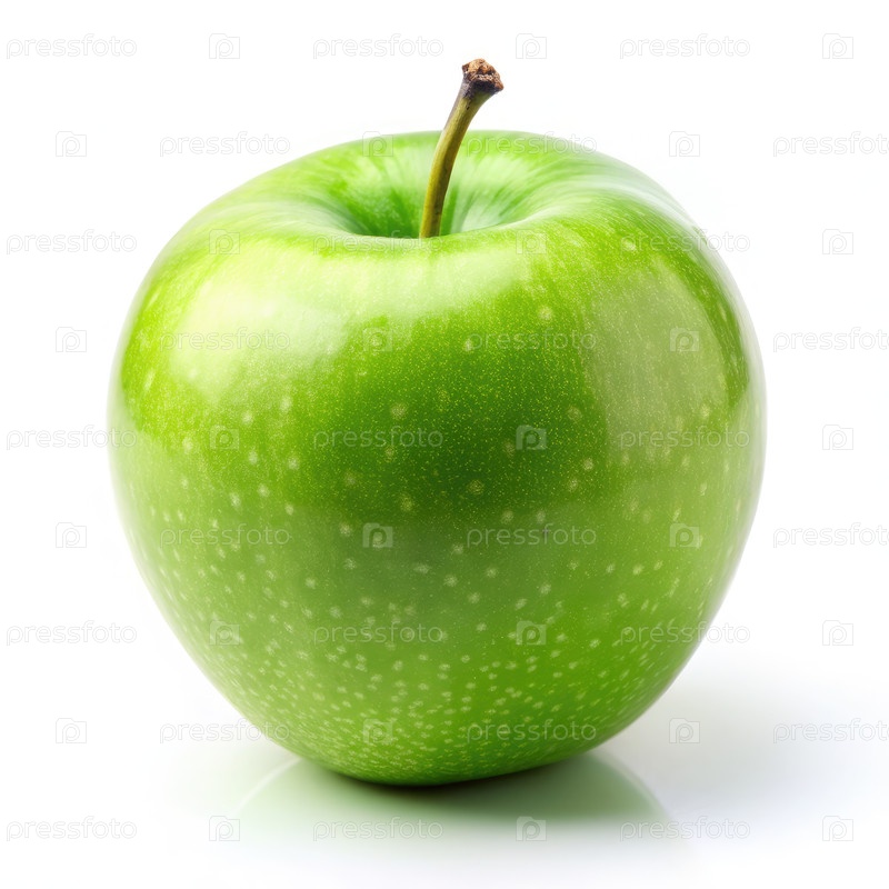 Одно зеленое яблоко на белом фоне