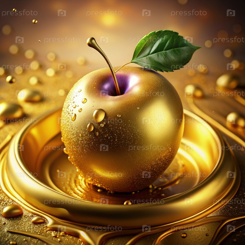 Золотое яблоко, отдыхающее в бассейне жидкого золота