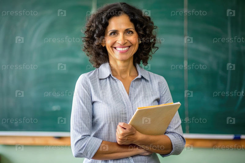 Уверенная в себе учительница латинского языка в классной обстановке